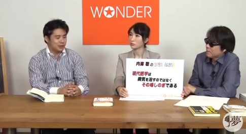 2013年6月に発売されて以来、ネットを中心に、人々に大きな衝撃を与えるとともに、医療や薬に疑問や不信感を持っていた人たちの間で大きな共感をもって迎えられました。それでは早速、今日のワンダー・プロフェッサーを紹介しましょう。Tokyo DD Clinic、院長の、内海聡さんです。よろしくお願いします。