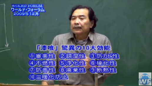何でこんなことになるんだろうと、私は首をひねったわけ。おかしいじゃねえかと。漆喰の特徴、読んでください。審美性に優れ、調湿性に優れ防カビ性に優れ、不燃性に優れ、浄化性に優れ、硬化性、防音性、廃棄性、断熱性、さらに温暖化防止に優れる。10項目の超メリットがある。これがいま抹殺されようとしている。まあこのようにして、まさに情報帝国主義、見えない力によってあらゆるものを、何を支配している?文化を支配している。教育を支配している。